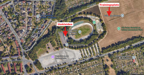 Note: Training takes place on a grass field, so for your own safety, it is helpful to wear cleats. Training takes place at the velodrome (Heeper Straße 301). There are changing rooms (with showers) on site. We meet at 6:45 p.m. at the changing rooms and then walk together to the training ground